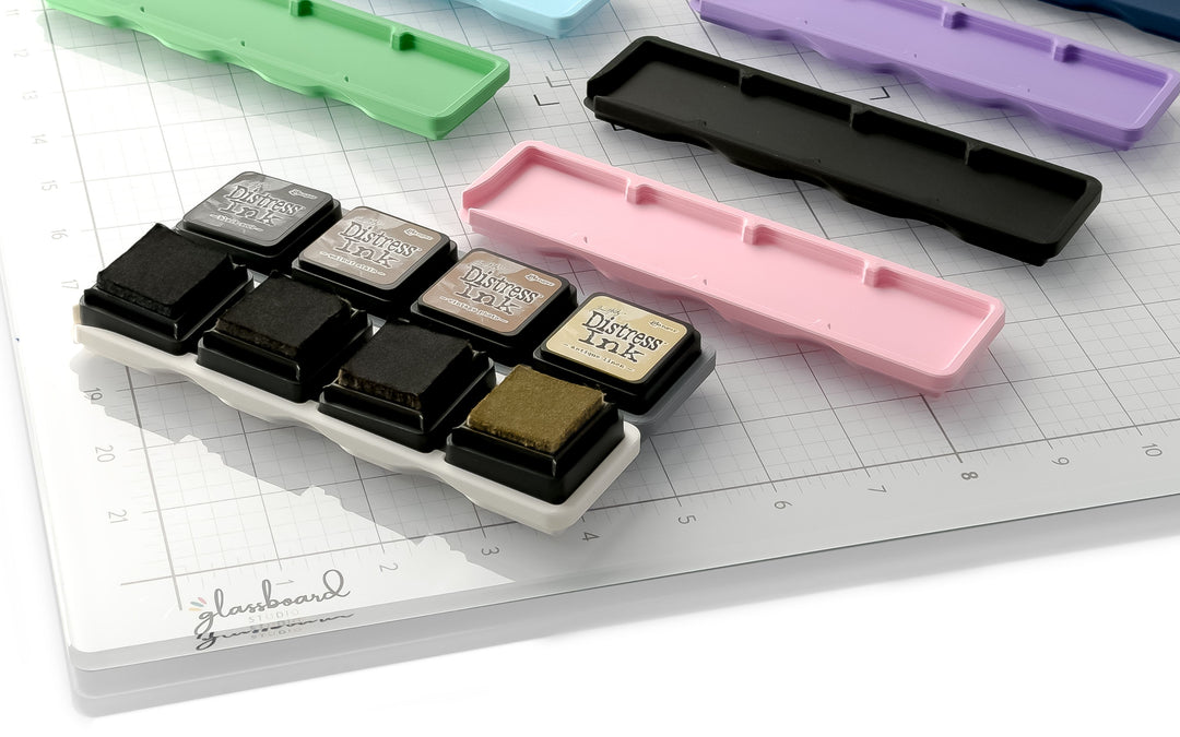 A magnetic, non-slip tray that holds four mini ink pads steady while you create.