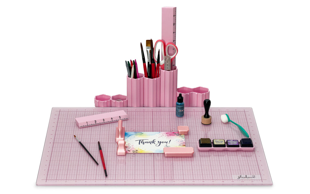 The perfect magnetic glass workspace for clean, accurate scrapbook layouts.