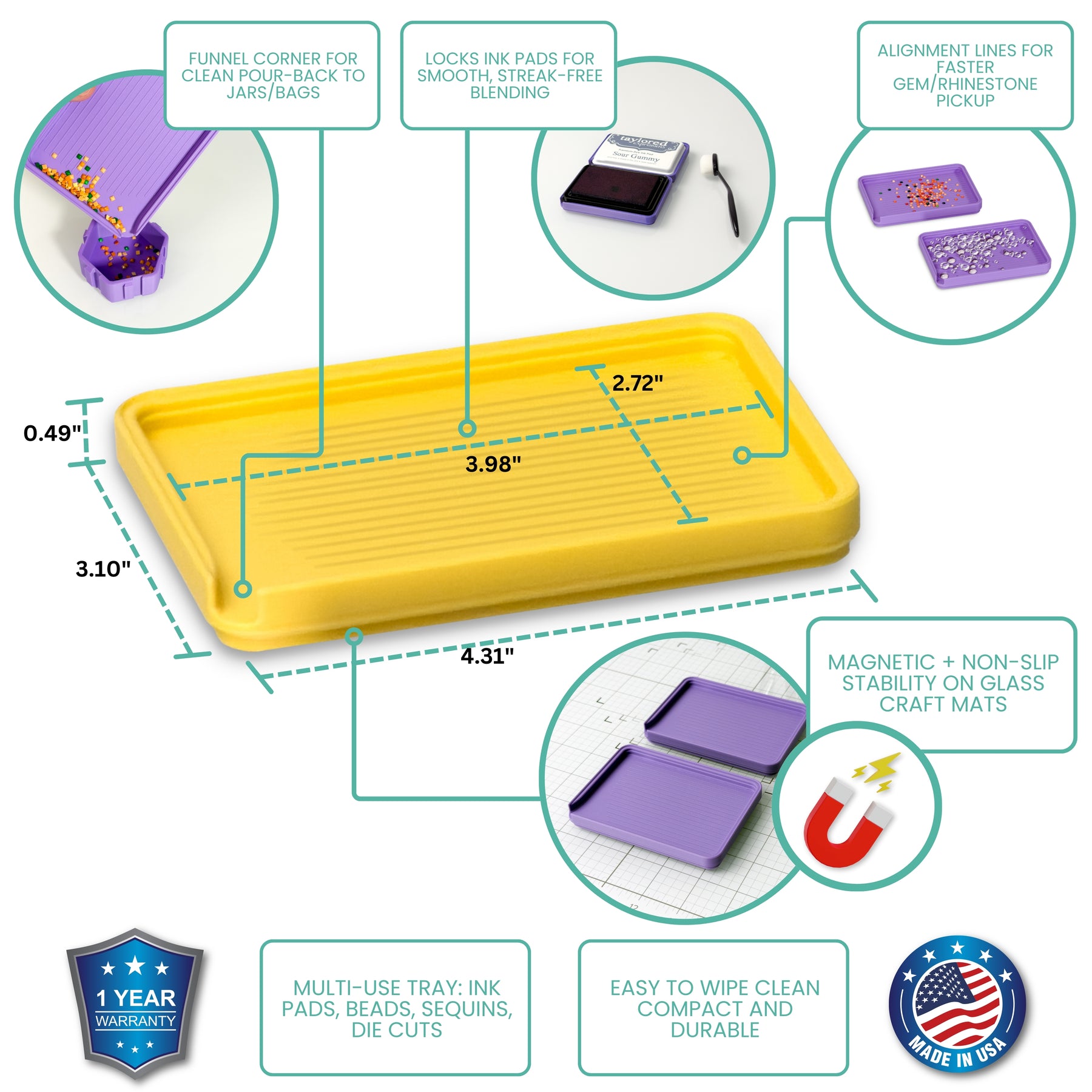 These Magink trays are awesome! They hold perfectly to your magnetic work mat and hold your inks in place to get up a hand for ink blending. You know how you always say “I wish I had another free hand”? Well, now you do’ plus they are great to pour out your jewels or sequins and early put them back into containers using the pour spot! After using these for about two months, I came back and purchased two more because I love them so much.