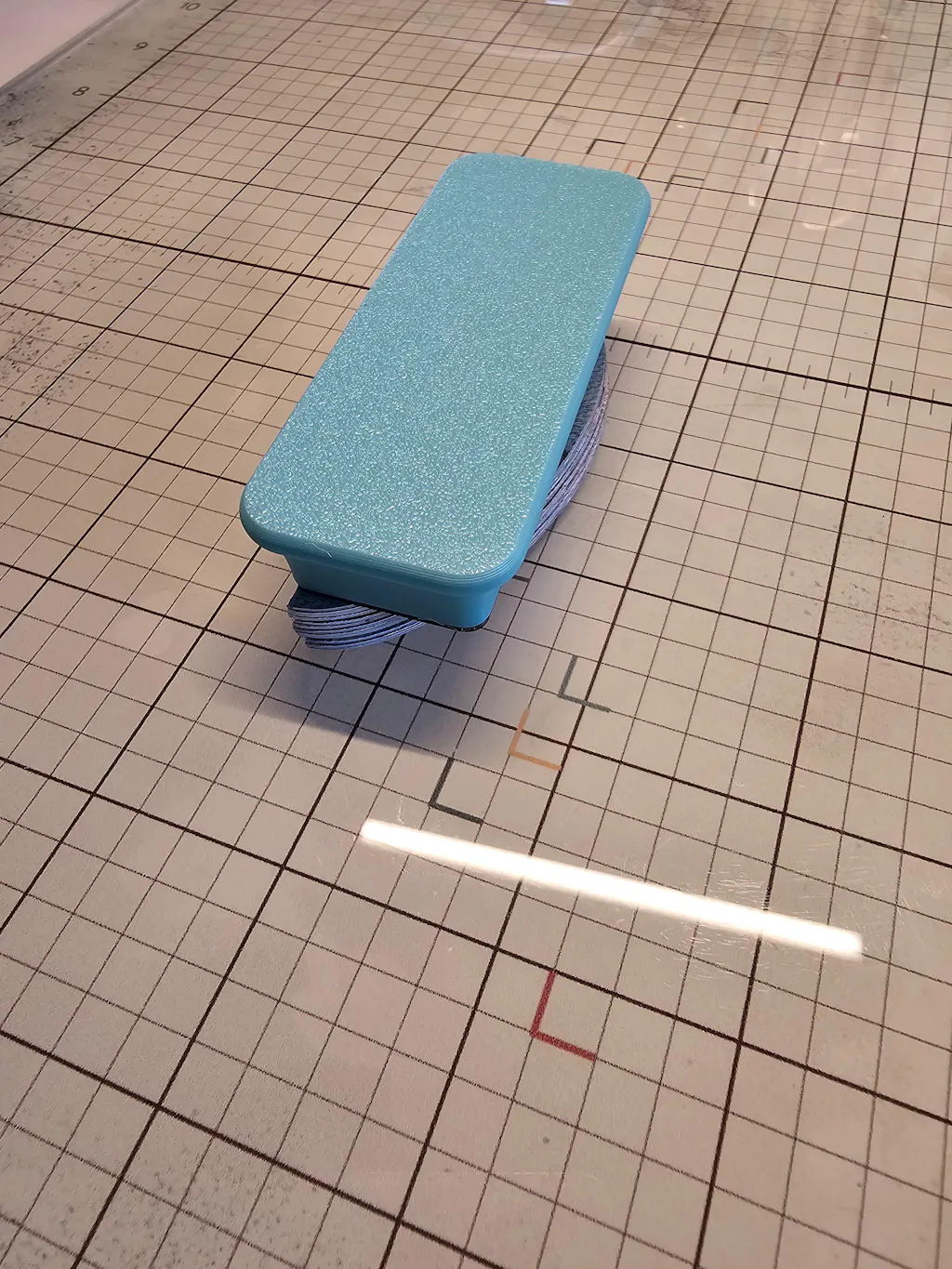I am so in love with this magnetic glass board. Where do I start? One its absolutely GORGEOUS! I had second guessed myself several times on if the design would become distracting or hard to craft on. Its not. The gridlines are perfectly obvious and the card lines in the center are also clearly visible. The weight is nice and heavy so if doesn't slide around on my craft desk. It was slightly smaller than I hoped but even that's not a dealbreaker. The powerful magnet is the biggest help that I never knew I'd need. I made a project where I had to precisely glue 12 pieces of 100lb cardstock in half and it held it down to set up!! That's crazy! That's 24 sheets of cardstock!!!!! Eventually I hope to add to the magnet accessories. Shipping was great, although USPS is super slow. It arrived in great condition with a very nice pressed paper form, at least I think that's what it was made of. It's not plastic or the dreaded Styrofoam so I am 1000% appreciating that! A huge shoutout to Cathy Zielske and her YouTube video with a link for savings or this probably wouldn't have happened. Crafting is now productive and I get to look at my pretty board. We all need pretty things, especially when they are super functional.