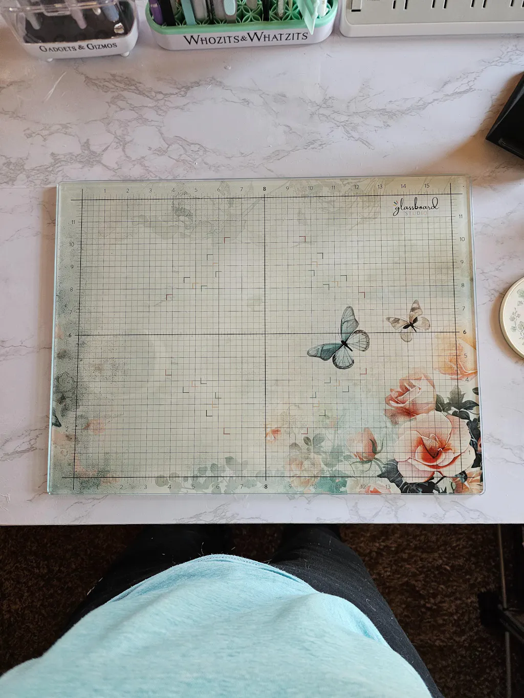 I am so impressed with how beautiful my butterfly glassboard is. It's perfect for all my different crafts. It holds up to my card making process with printed measurements, strong magnets to hold my work, and a smooth surface to mix colors, but also my hot glue projects which come cleanly off the glass surface. The small trays hold my craft bits and pieces so they're always in the same place. When not using my butterfly magnets, they decorate my craft area beautifully. This set is one of the best craft tools I have in my workspace!