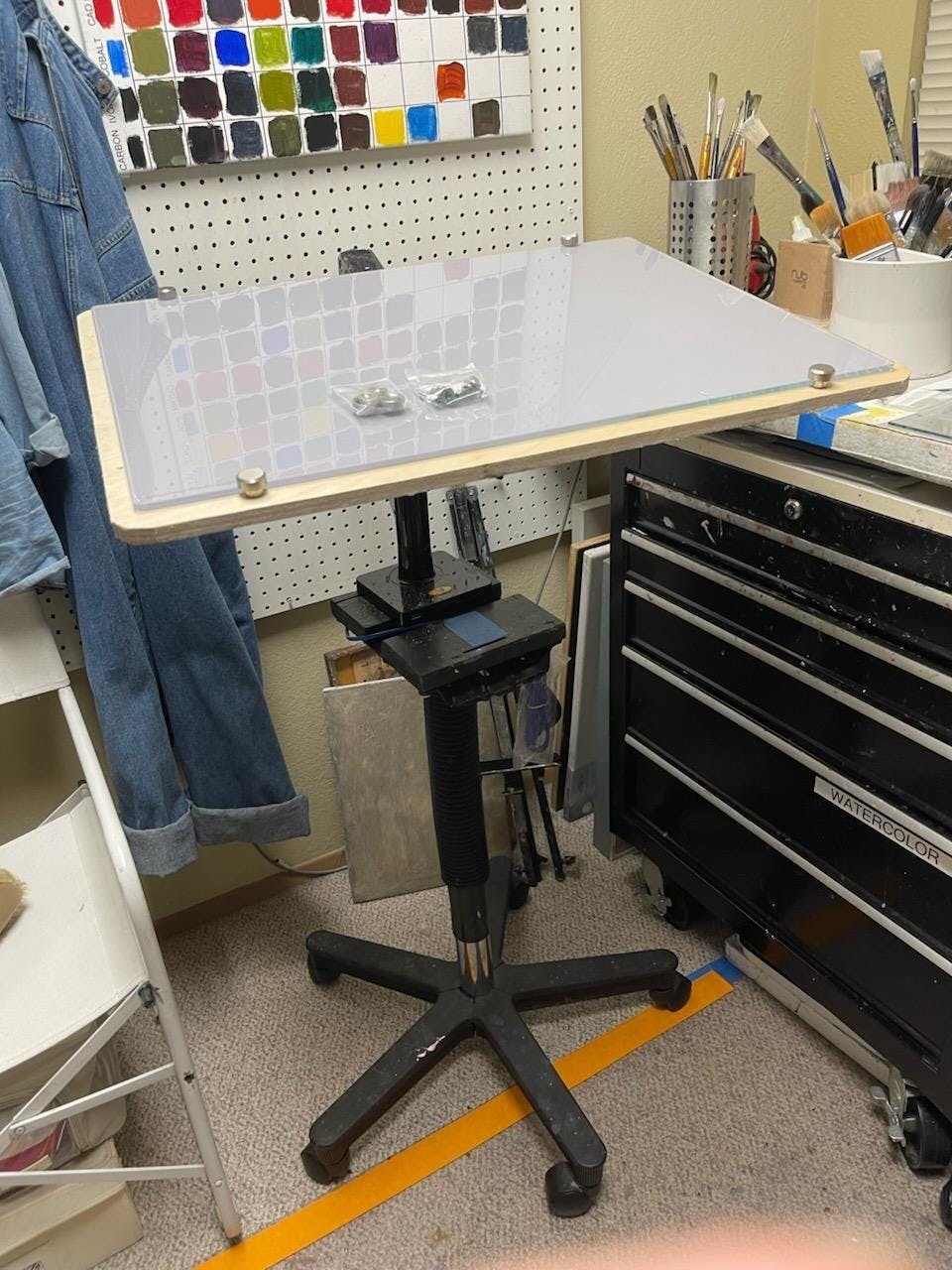 I've had many glass palettes - this is a game changer. I purchased the mid-value grey, and it is exactly what I have always looked for. Perfect palette. Great quality. Truly love it. Image shows palette mounted on diy adjustable, mobile unit.